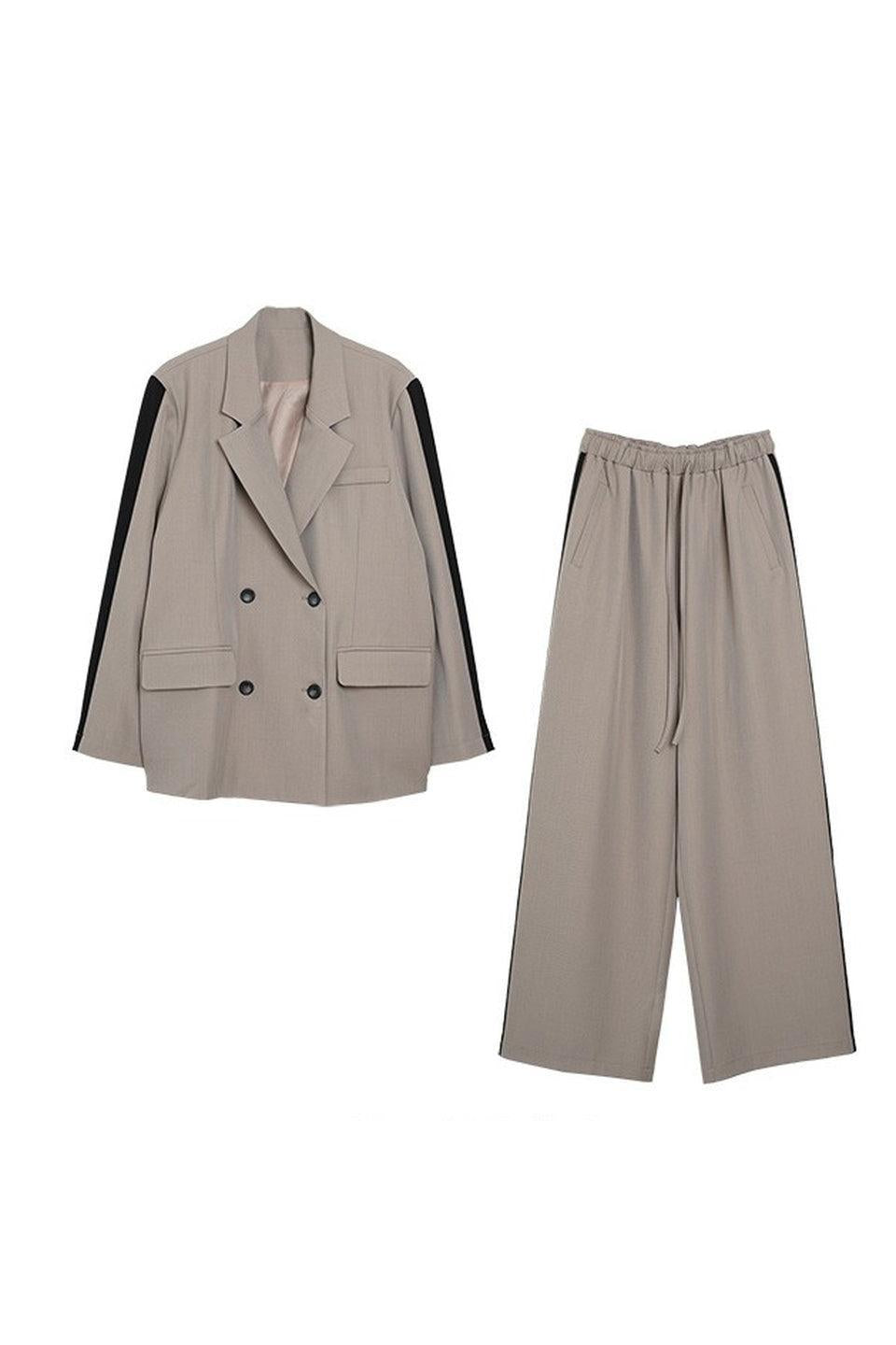MICALLE MICALLE セットアップ, サイドライン セットアップ, レディース スーツ, ダブルジャケット, ワイドパンツ, オフィスカジュアル, 大人カジュアル, 2ピース, ベージュ セットアップ, グレー セットアップ